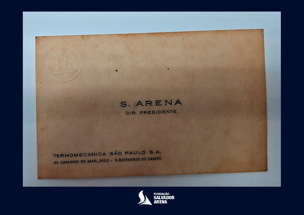 - Cartão de visita utilizado por Salvador Arena na Termomecanica: