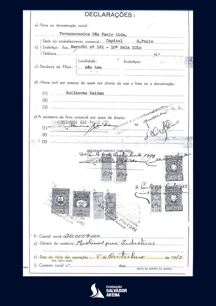 - Registro de fundação da Termomecanica: