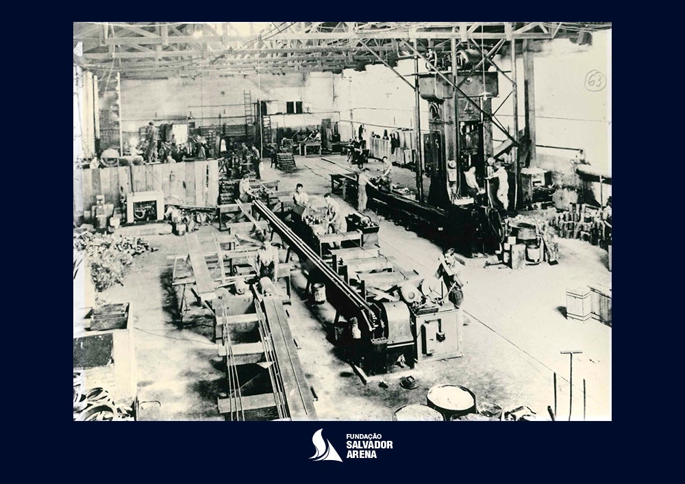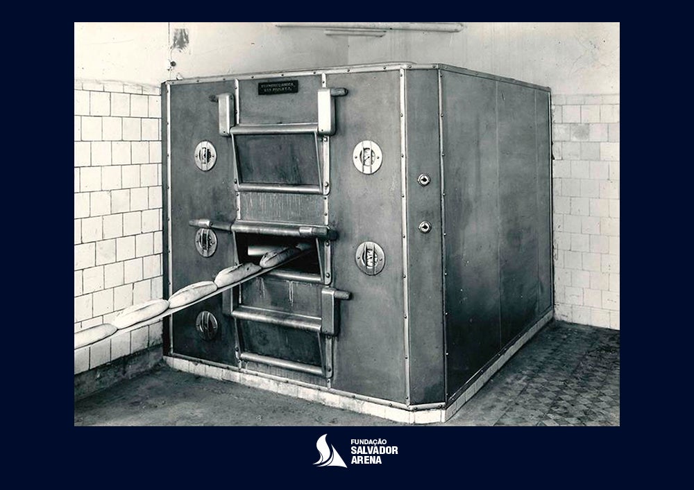 - Os primeiros produtos fabricados pela Termomecanica foram fornos e equipamentos para padaria. Na foto, forno de padaria construído na fábrica da Mooca, na década de 1940: