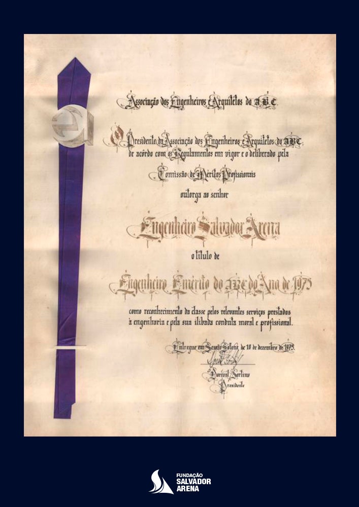 - Homenagem "Master da Engenharia do ABC", concedida a Salvador Arena: