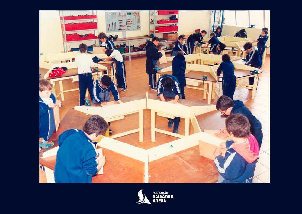- Alunos do Colégio em atividade na oficina, no início da década de 1990: