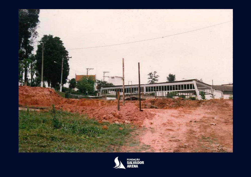 - Obras no terreno onde foi instalado o colégio, na Estrada dos Alvarengas, no início da década de 1990: